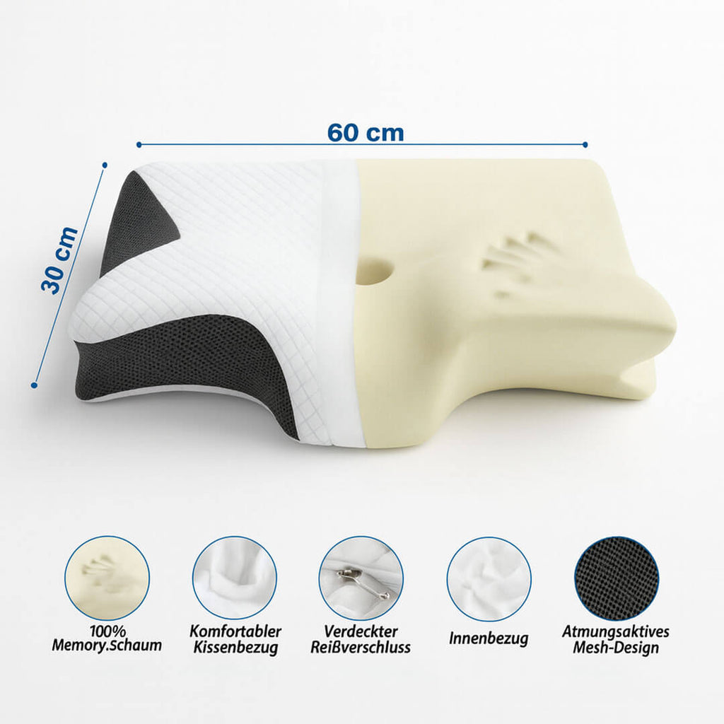 Freie Atemwege für tiefen, ruhigen Schlaf Im Gegensatz zu herkömmlichen Kissen wurde das Kissen gezielt entwickelt, um typische Probleme wie Nackenschmerzen, Fehlhaltungen und unruhigen Schlaf zu vermeiden.