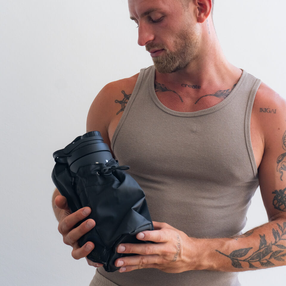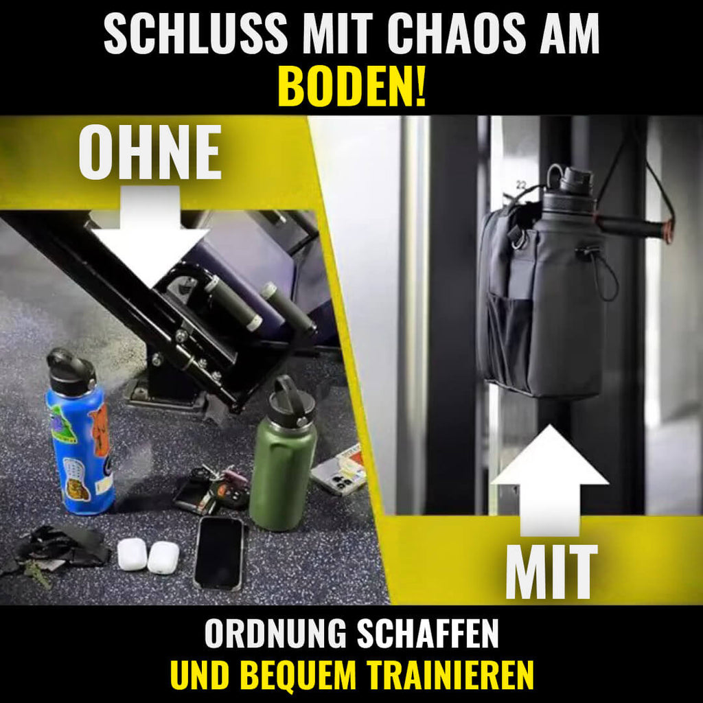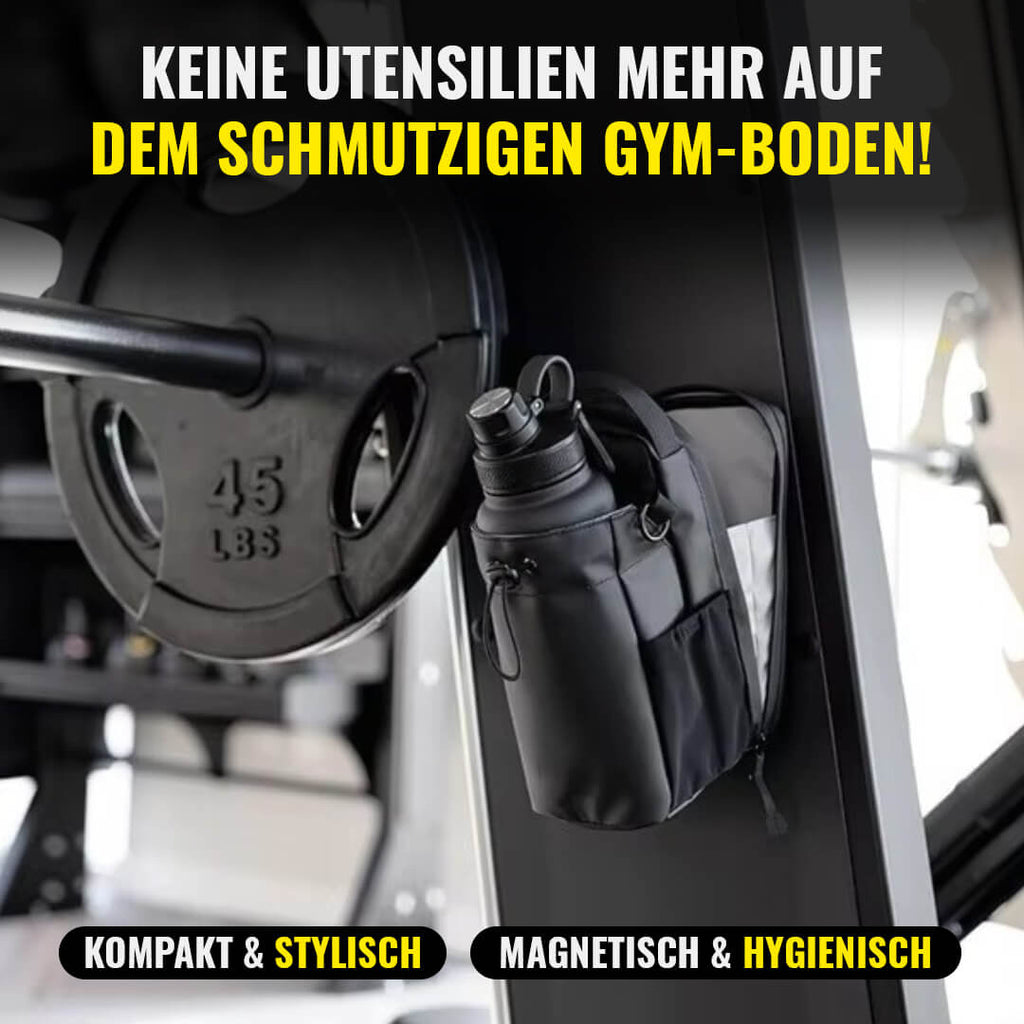Du willst im Gym loslegen, aber weißt nicht, wohin mit deinen Utensilien! Die Flasche rollt weg, das Handy liegt auf dem schmutzigen Boden - du hast ständig einen Blick darauf, um alles zu sichern.