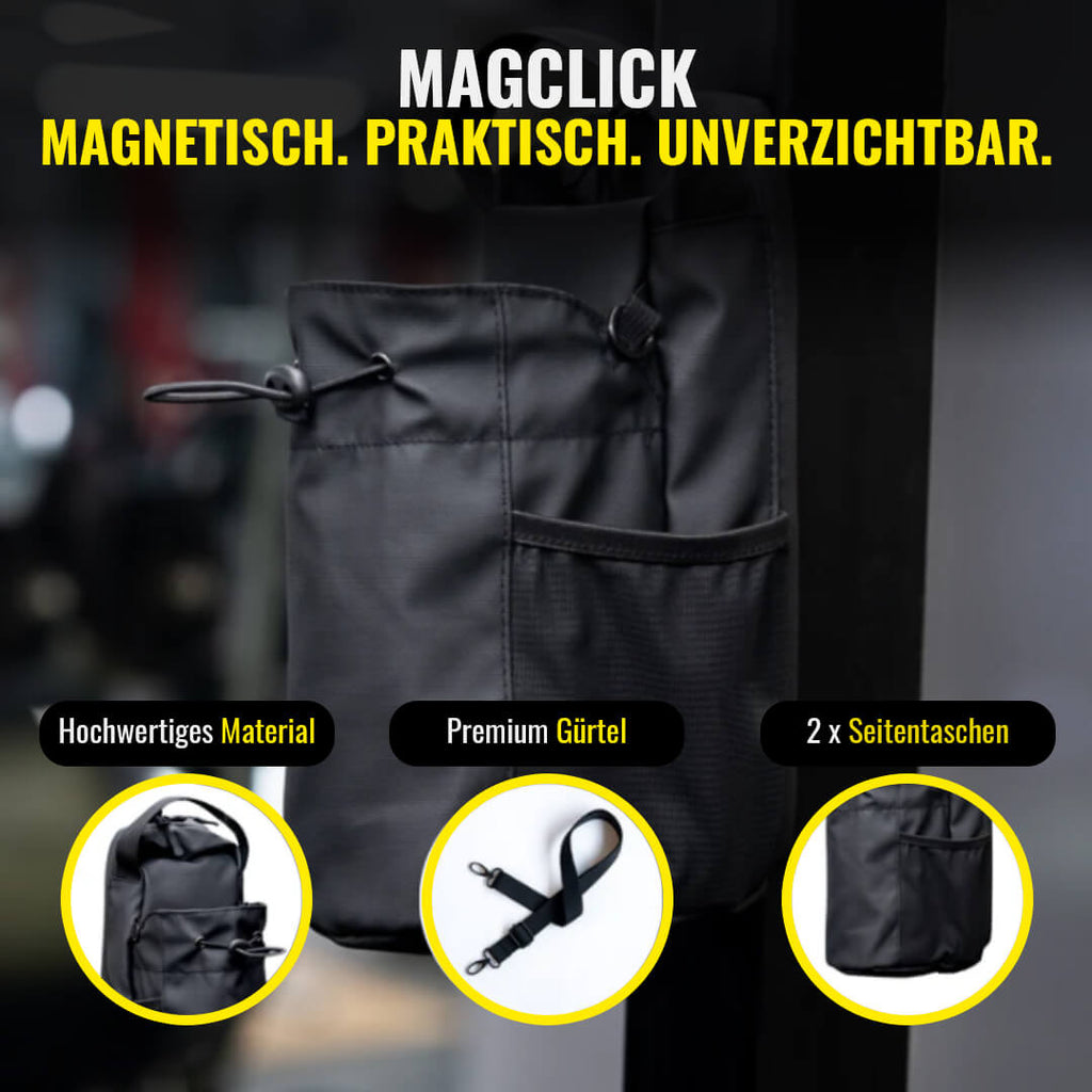 Die integrierten Magnete der MagClick sorgen dafür, dass deine Tasche an allen gängigen Fitnessgeräten bombenfest hält - ganz ohne verrutschen. Das Highlight: Die Magnete sind abgeschirmt, so dass deine elektronischen Geräte sicher bleiben.
